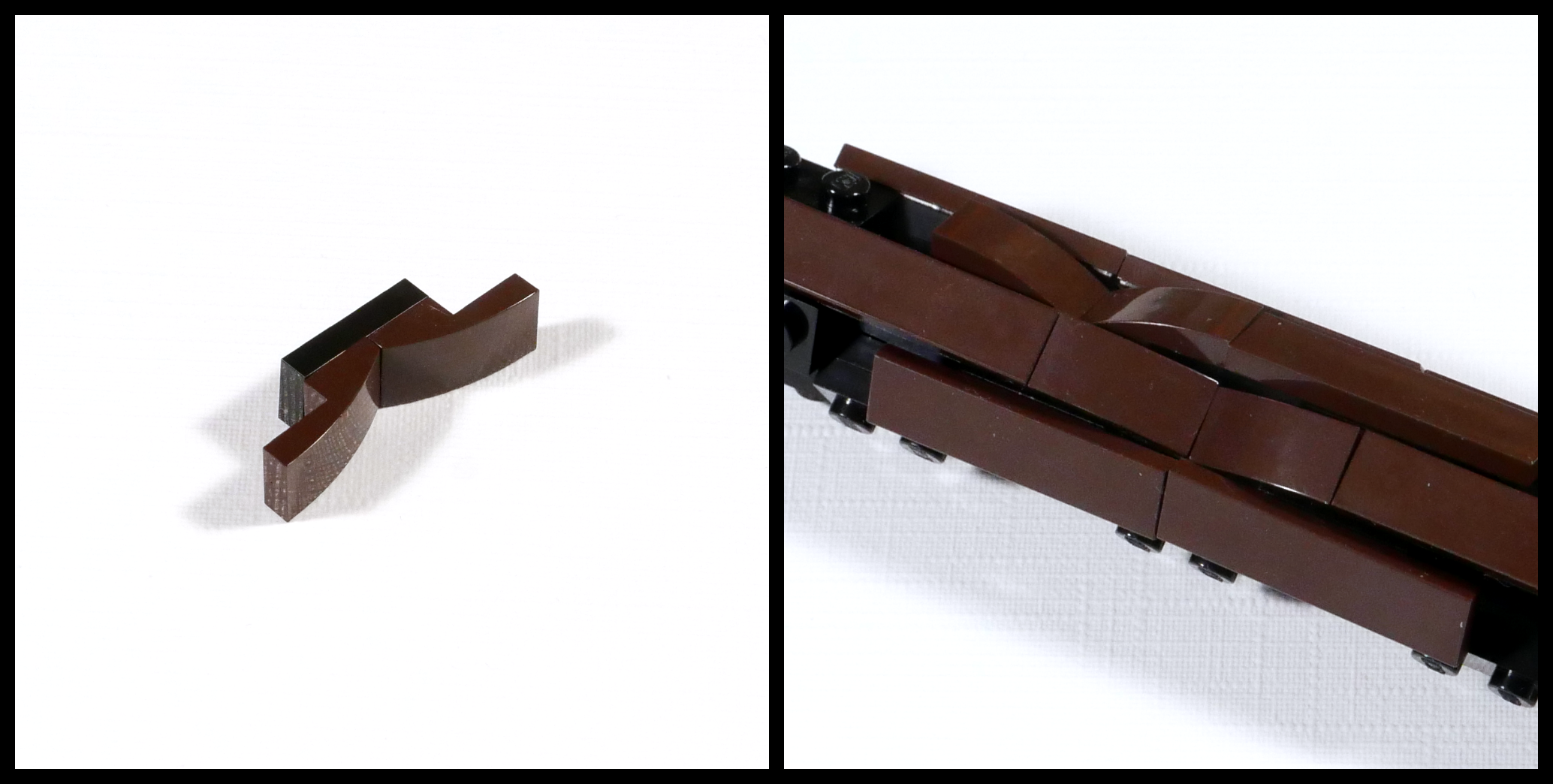 In the third layer we have two pieces that extend horizontally, in order to break the lines that were formed by the previous two layers. Do also note that these two extensions are made possible by the two pieces in the second layer that were shortened vertically. If not we’d have a collision on our hands π